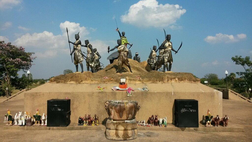 ทุ่งสัมฤทธิ์เป็นสถานที่ทางประวัติศาสตร์อีกแห่งของโคราช ที่เชื่อมโยงกับเหตุการณ์ที่ย่าโมนำชาวโคราชสู้รบกับกองทัพเวียงจันทร์จนได้ชัยชนะ ลักษณะเป็นทุ่งโล่งอย่างที่เห็นทั่วไป ชาวบ้านทุ่งสัมฤทธิ์ ได้ร่วมกันสร้างศาลสถิตดวงวิญญาณนางสาวบุญเหลือ และวีรชนชาวโคราชเอาไว้บริเวณทุ่งสัมฤทธิ์ เพื่อกราบไว้สักการะ ปัจจุบันได้มีการสร้างอาคารหลังใหม่ขยายให้โอ่โถงขึ้น ประวัติ เล่ากันว่า เมื่อคราวย่าโมเป็นผู้นำชาวโคราชเข้าต่อสู้กับฝ่ายเจ้าอนุวงศ์จนได้ชัยชนะ ณ ทุ่งสัมฤทธิ์ มีสตรีผู้กล้าหาญร่วมต่อสู้อีกท่านหนึ่งคือ นางสาวบุญเหลือ ซึ่งเป็นผู้พลีชีพด้วยการจุดไฟทำลายเกวียน ที่บรรทุกดินระเบิดจนตัวตาย เมื่อวันที่ 4 มีนาคม 2369 ชาวบ้านทุ่งสัมฤทธิ์และชาวโคราชได้ให้ความเคารพนับถือ ไม่ยิ่ง่ย่อนกว่าย่าโมและเรียกนางบุญเหลือว่า ย่าเหลือ สิ่งน่าสนใจ อนุสรณ์สถานวีรกรรมทุ่งสัมฤทธิ์ เป็นศาลสถิตดวงวิญญาณ นางสาวบุญเหลือหรือย่าเหลือ และวีรชนชาวโคราชสร้างเป็นศาลาทรงไทย แบบจัตรุมุข ขนาดกว้าง 5 ม.ยาว 5 ม.ชาวทุ่งสัมฤทธิ์ร่วมกันสร้างขึ้นใ่น พ.ศ. 2531 ภายในศาลมีรูปปั้นนางสาวบุญเหลือ ขนาดย่อมยืนอยู่ในท่าถือคบเพลิงที่นำไปจุดเกวียนบรรทุกดินระเบิดของทหารลาวตามเรื่องราวในอดีตที่เล่ากันมา ข้าง ๆ นางสาวบุญเหลือมีรูปปั้นและภาพวาดของย่าโมหรือท้าวสุรนารี ใ่นแต่ละวันจะมีชาวบ้านทุ่งสัมฤทธิ์และคนจากที่อื่นแวะเวียนมากราบไหว้บูชาบนบานศาลกล่าว เพราะเชื่อว่าดวงวิญญาณย่าเหลือยังสถิตอยู่ ณ ทุ่งสัมฤทธิ์ ชาวบ้านทุ่งสัมฤทธิ์จะพร้อมใจกันจัดงานรำลึกถึงวีรกรรมในวันที่ 4 มีนาคมของทุกปี